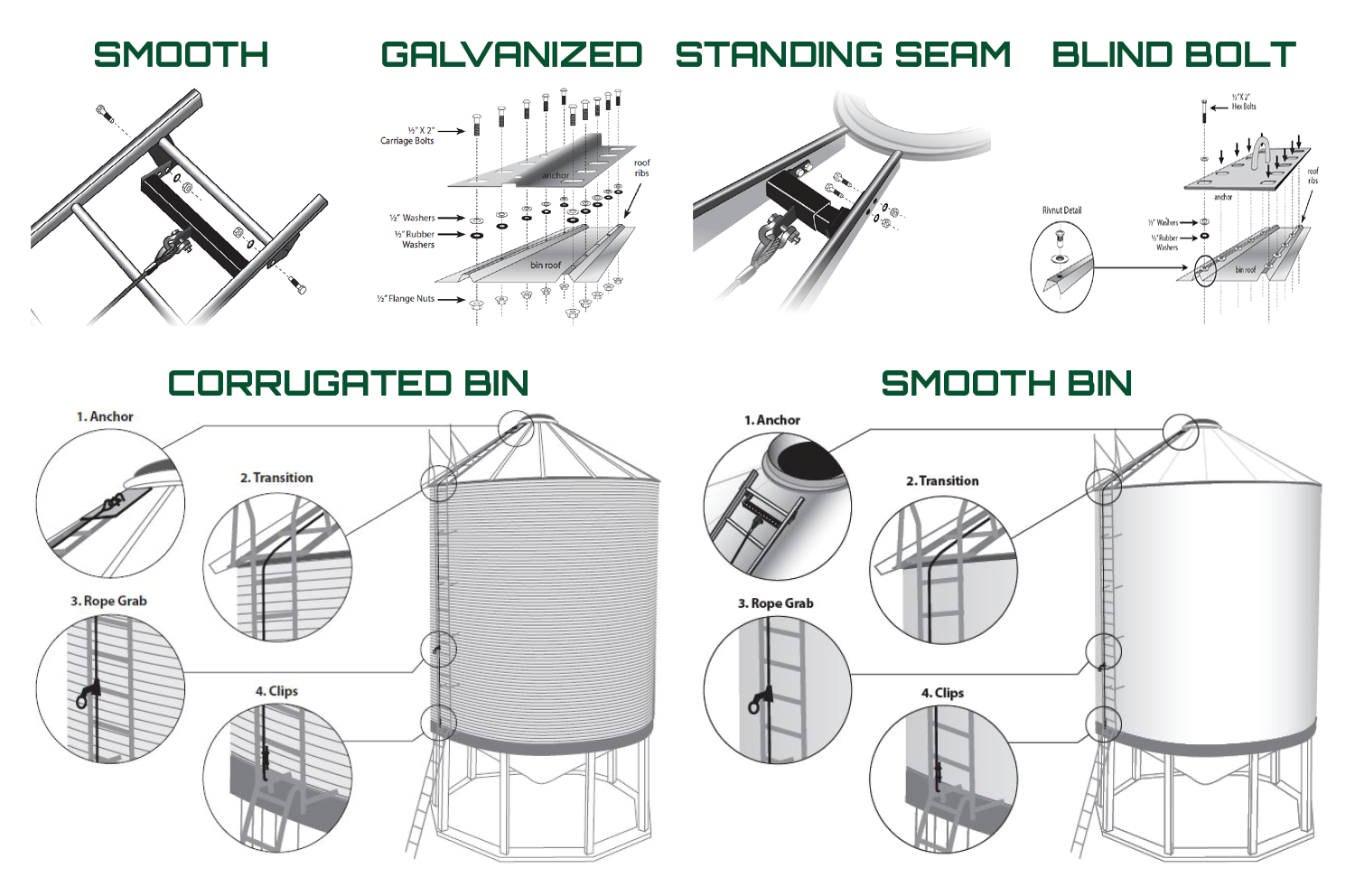 We have engineered 4 different anchors to work with most grain bins.